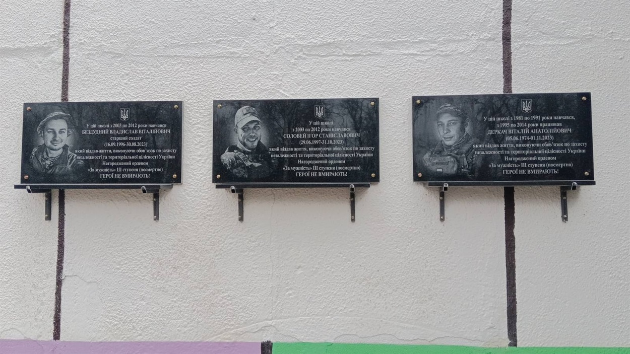 У Лютеньці, на фасаді місцевого ліцею меморіальні дошки відкрили трьом захисникам — Владиславу Бездудному, Віталієві Деркачу та Ігорю Солов’ю.