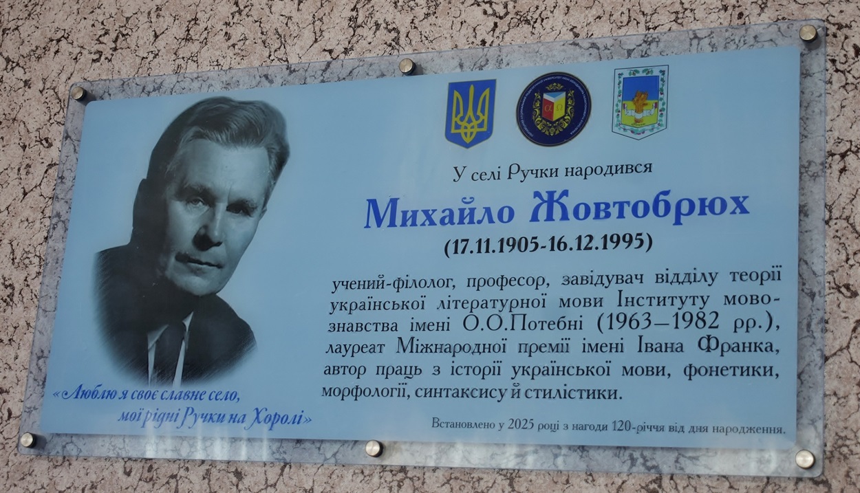 У селі Ручки Петрівсько-Роменської громади відкрили меморіальну дошку в пам'ять про Михайла Жовтобрюха — класика української філології, видатного мовознавця, професора, автора понад 300 мовознавчих праць, підручників з курсу сучасної української мови, монографій «Мова української преси», «Українська граматика» та ін.