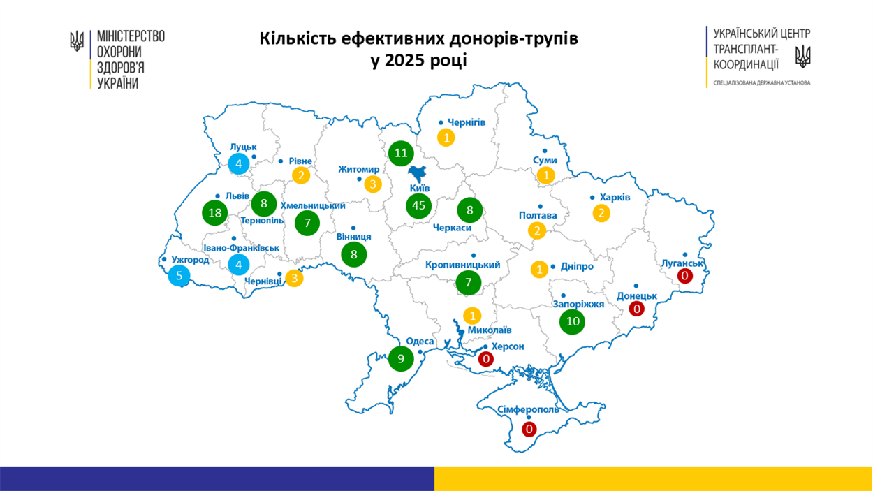 За офіційними даними, у Полтавській області за рік зафіксували лише два випадки посмертного донорства. Для порівняння: у Черкаській області таких випадків було вісім, а Київ став лідером — 45 донорів за рік.