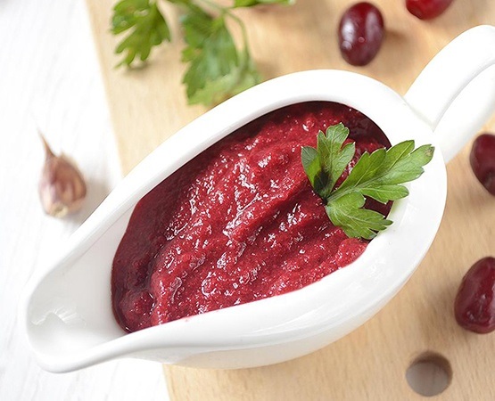 Велику каструлю з водою поставте на вогонь. Опускаємо кизил в киплячу воду і проварюємо 10–15 хвилин. Зливаємо воду через друшляк. Ягоди з друшляка не пересипаємо і там же розминаємо їх товкачем. Видаляємо з отриманого пюре кісточки. М’якоть відправляємо в окрему велику каструлю, ставимо на середній вогонь і помішуємо до кипіння. Додаємо цукор і сіль, поки соус не стане густим. Знімаємо з вогню, даємо охолонути і розливаємо у банки.
