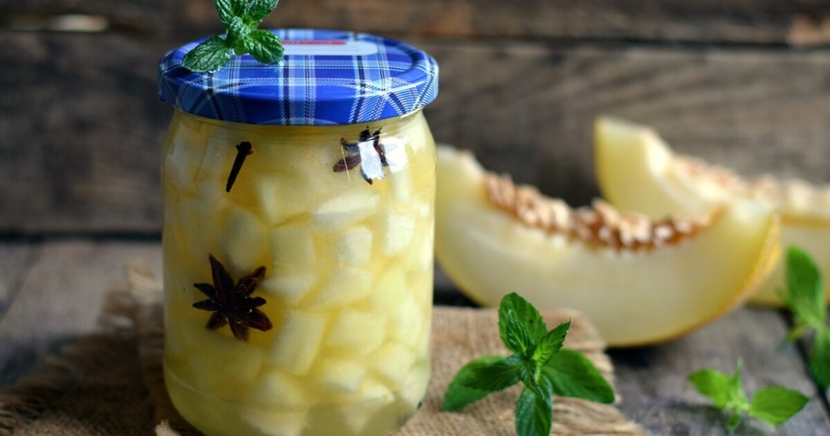 Банки необхідно ретельно промити і поставити в духовку на мінімальну температуру хвилин на 10. Диню гарненько помити, розрізати навпіл і видалити кісточки. Очистити диню від шкірки і порізати м'якоть невеликими кубиками. Дістати банки з духовки і укласти в них диню, дуже щільно набивати не потрібно. Залити банки окропом і накрити кришкою, залишити постояти 10 хвилин. Акуратно, притримуючи кришку, злити воду з банки в каструлю, додати цукор і лимонну кислоту. Варити цукровий сироп на невеликому вогні до закипання, постійно помішуючи. Залити цукровим сиропом банки з динею. Тепер потрібно банки стерилізувати – в каструлю налити воду і довести її до кипіння. На дно каструлі краще постелити рушник, щоб банки не розбилися об дно. Поставити в каструлю гарячі банки і кип'ятити на самому маленькому вогні протягом 10 хвилин. Стерилізовані банки закатати кришкою і накрити рушником, залишити так до повного охолодження. Зберігати таку диню можна в холодильнику або погребі.