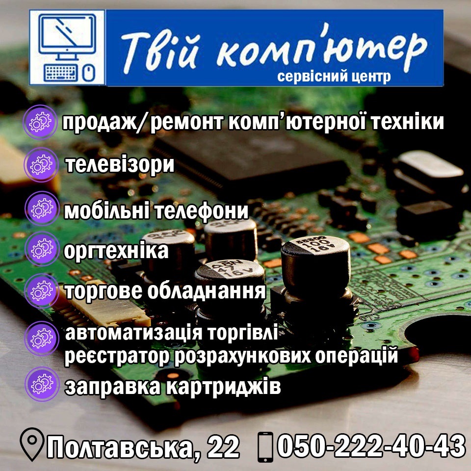 Привіт! Ви, певне, мені всі знаєте. Крім того, що я засновник ініціативи зі збору сміття Green City Наdiach, разом із родиною займаюся необхідною для гадячан роботою. Наш сервісний центр займається ремонтом тапродажем комп’ютерної і оргтехніки, телевізорів та мобільних телефонів. Також ми здіснюємо автоматизацію торгівлі та встановлюємо торгове обладнання та реєстратори розрахункових операцій.